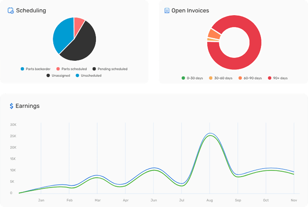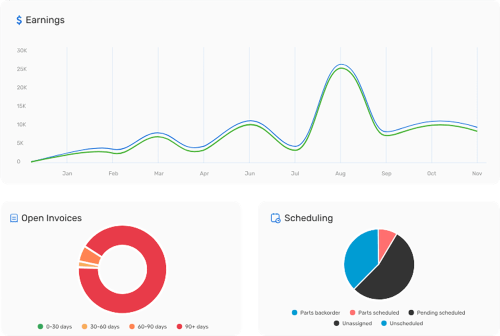 Avoid lost revenue from scheduling errors with a centralized calendar and technician dispatch view.